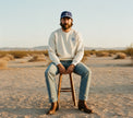 A heavyweight crewneck inspired by 1970s desert athletics and country-club leisure. Garment-dyed for a lived-in feel, embroidered with the Marfa Country Club crest, and finished with a slightly oversized fit for relaxed comfort on or off the range.